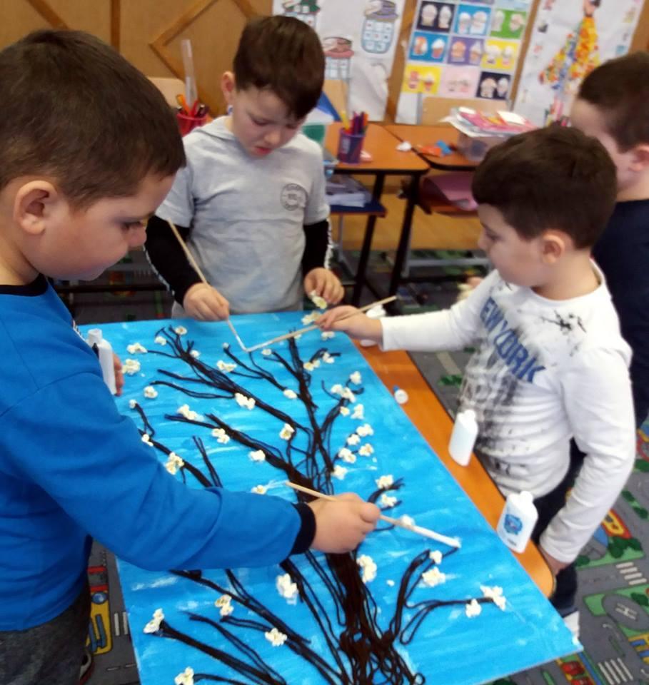 Activitate practic-aplicativă care cuprinde exerciții variate, cu caracter interdisciplinar, prezentate într-un stil atractiv, care vizează, pe lângă consolidarea deprinderilor de colorat și lipit fire ( ramurile copacului) și popcorn (florile) și stimularea și dezvoltarea imaginației și a creativității, precum și formarea deprinderilor de muncă în echipă. În timpul realizării tablourilor, se cântă cu elevii cântecelul „Copăcelul din grădină”.