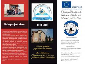 Broșura distribuită în cadrul activității de diseminare a rezultatelor proiectului Erasmus+ "Crossing Borders with Modern Media and Drama"